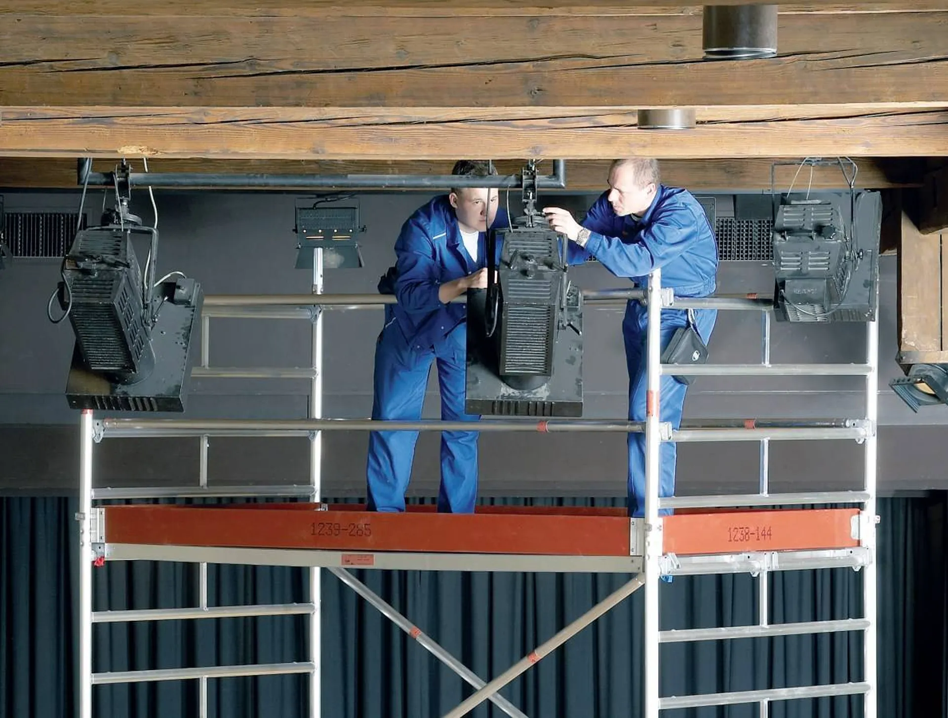La stabilité reste au rendez-vous, même à plus de 10 mètres, grâce à l’embase renforcée et aux béquilles. La structure accepte très bien le passage de charges légères et la circulation répétée sur la longueur, ce qui en fait une solution durable sur des chantiers actifs.