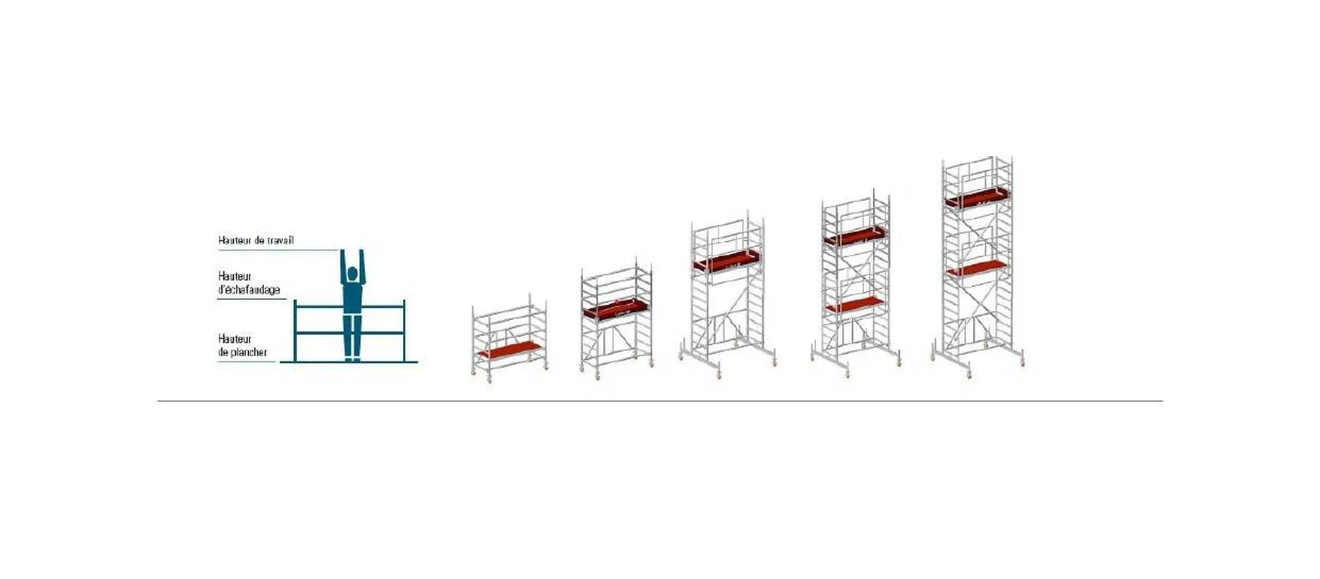 | Hauteur de travail (m) | 2,60 | 3,60 | 4,75 | 5,75 | 6,75 |